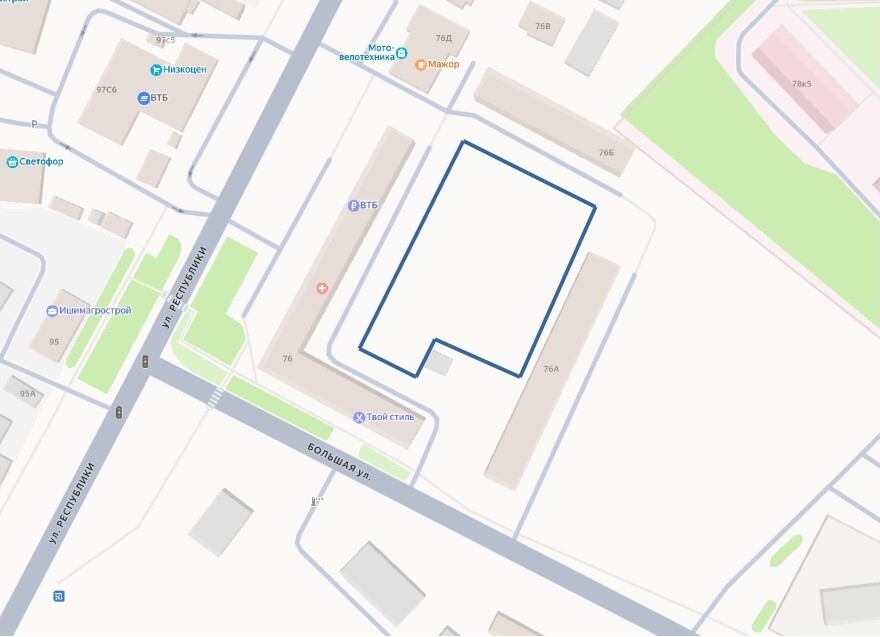 1. Территория в районе многоквартирных домов № 76, 76А, 76Б на ул. Республики.